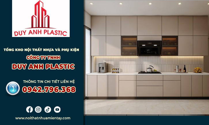- Tạo cảm giác rộng rãi: Ánh sáng kết hợp cùng màu sắc sáng của nhựa giúp bếp nhỏ trông thoáng hơn.