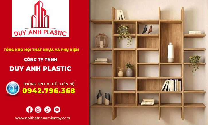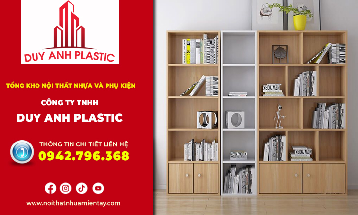 - Tủ sách trang trí nhựa Taiwan: Nhựa Taiwan loại 1 có khả năng chịu lực rất tốt, phù hợp để làm hệ lưu trữ sách lớn. Một hệ tủ cao sát trần nhà với hàng chục ngăn chia nhỏ. Đây là điểm nhấn cực mạnh cho những gia chủ yêu thích phong cách thư viện tại gia.