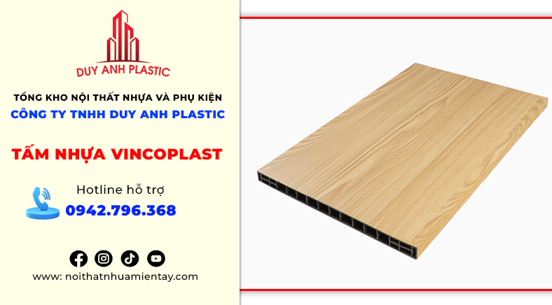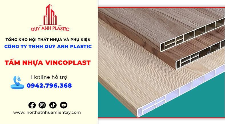 Duy Anh Plastic là một trong những đơn vị phân phối tấm nhựa Vincoplast tại Cần Thơ. Với nhiều năm kinh nghiệm trong lĩnh vực vật liệu nội thất, Duy Anh Plastic đã khẳng định vị thế của mình bằng sự uy tín, chất lượng và dịch vụ chuyên nghiệp. Duy Anh Plastic đã trở thành địa chỉ tin cậy cho nhiều công trình nội thất tại Cần Thơ và khu vực miền Tây. Duy Anh Plastic hướng đến mục tiêu trở thành nhà phân phối vật liệu nội thất nhựa hàng đầu miền Tây, không ngừng mở rộng sản phẩm, nâng cao chất lượng dịch vụ và đồng hành cùng khách hàng trong việc kiến tạo không gian sống hiện đại.